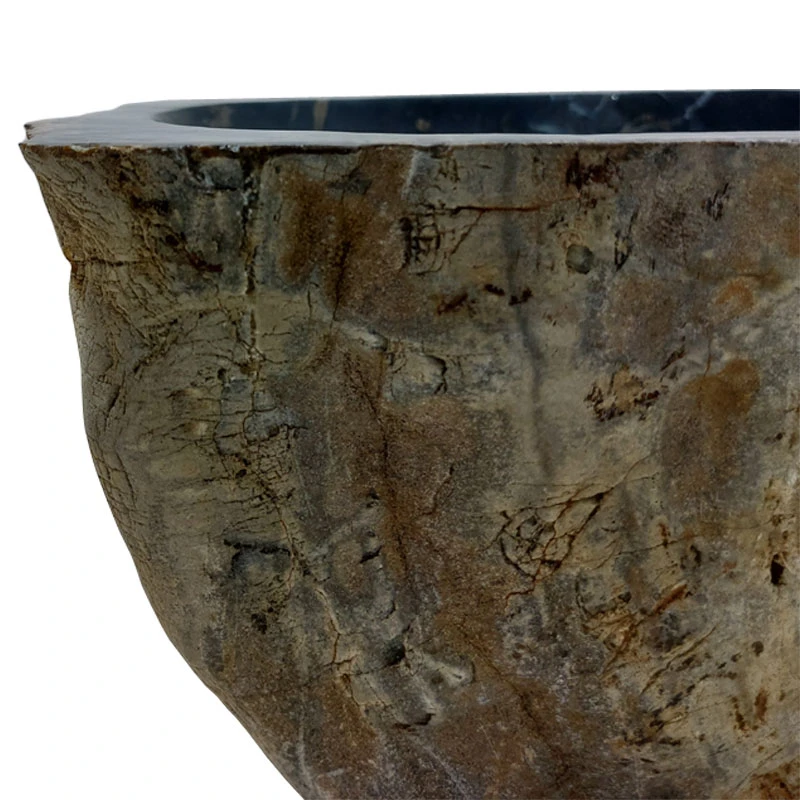 Cette vasque bois pétrifié a été fabriquée dans un bloc de bois fossilisé de haute qualité, qui n'a pas subi de dommages et qui a été choisi par nos équipes car il ne présente pas de failles rédhibitoire à une bonne qualité de produit fini.