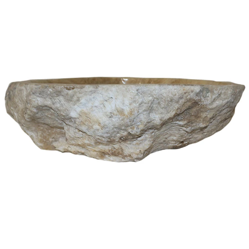 Optez pour ce lavabo atypique taillé dans la masse d'un bloc d'onyx. C'est une pièce unique puisque vous n'en trouverez pas 2 pareil, la nature ayant créée ce bloc d'onyx et les artisans ayant taillé cette vasque originale. L'intérieur a été poli et traité pour vous garantir un produit pratique à l'entretien et à l'usage; et l'extérieur a été laissé brut et naturel pour admirer la beauté de l'onyx dans votre salle de bain. Vous créerez ainsi une ambiance nature et classe dans votre salle de bain, et cela pour de nombreuses années.