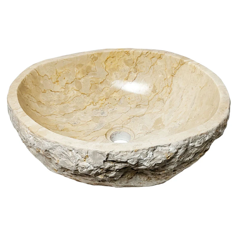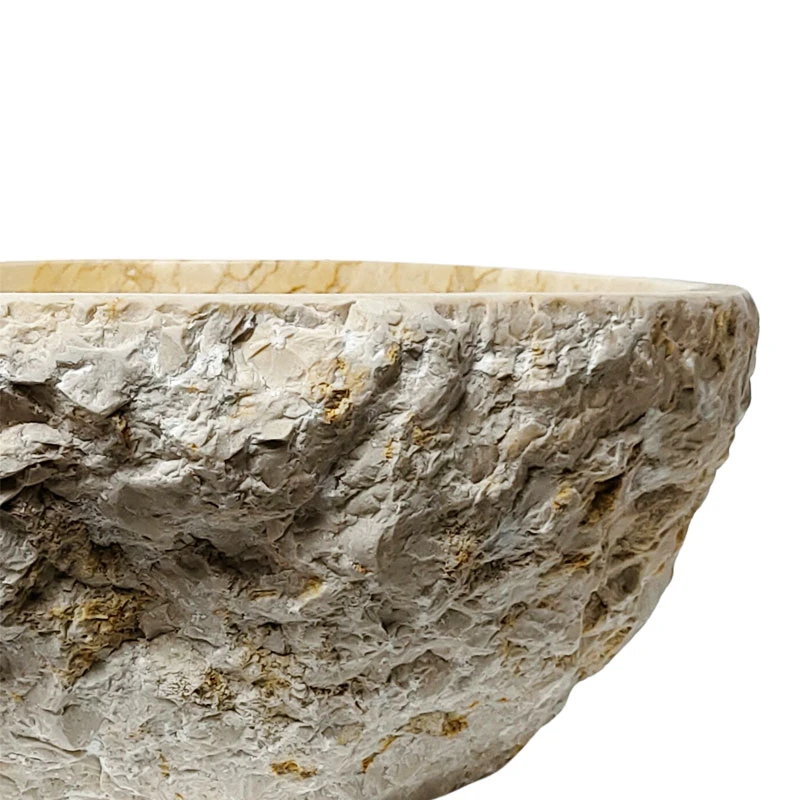 La vasque en pierre beige est taillée par des artisans à partir d'un véritable bloc de marbre erosi. Cette façon de travailler nous permet de vous apporter une pièce unique et d'avoir une plus grande maîtrise de la matière. En choisissant la vasque en marbre vous aurez un produit d'exception dans votre salle de bain.