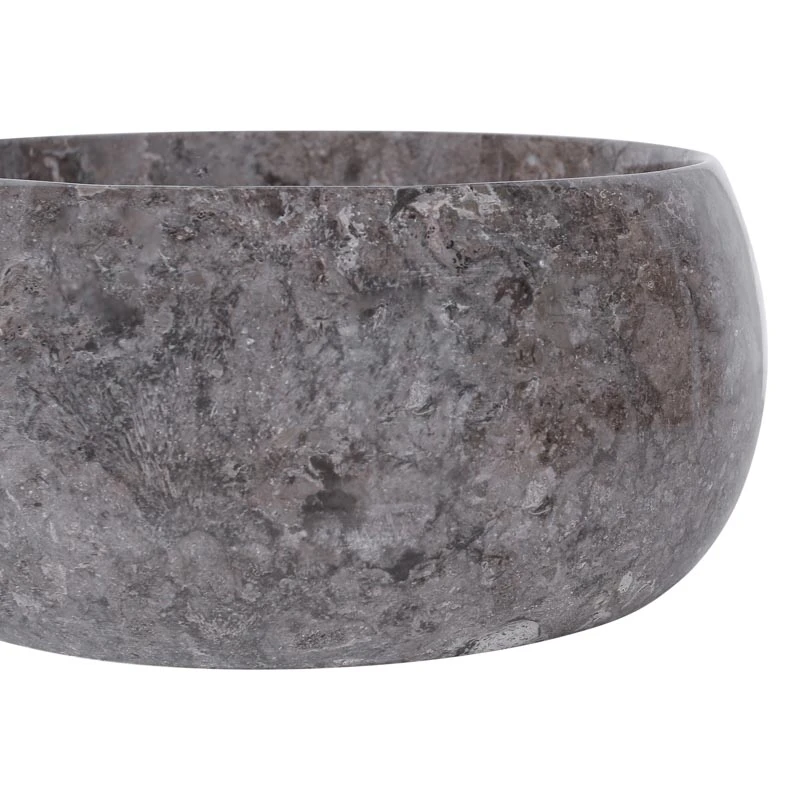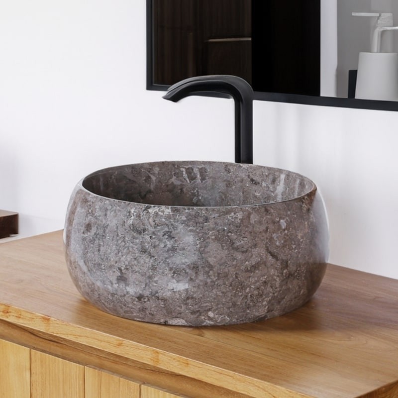 La taille 35cm, ses bordures fines et sa forme ronde, font de cette vasque en pierre grise un lavabo idéal pour habillez votre salle de bain.