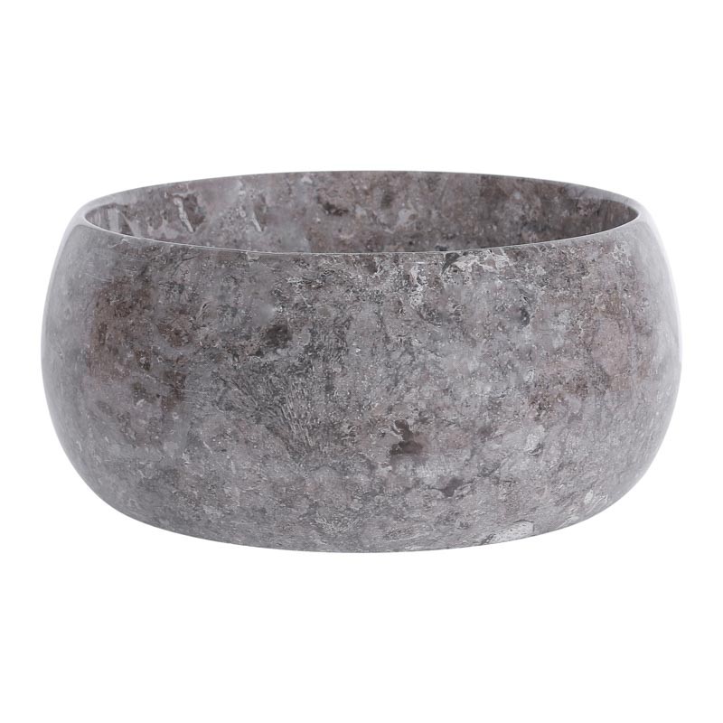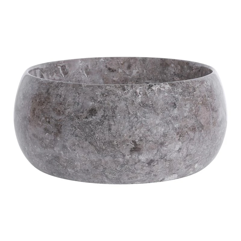Ø35 x h15 cm. 20kg. Finition extérieure "polie". Bordure fine. Marbre Gris.